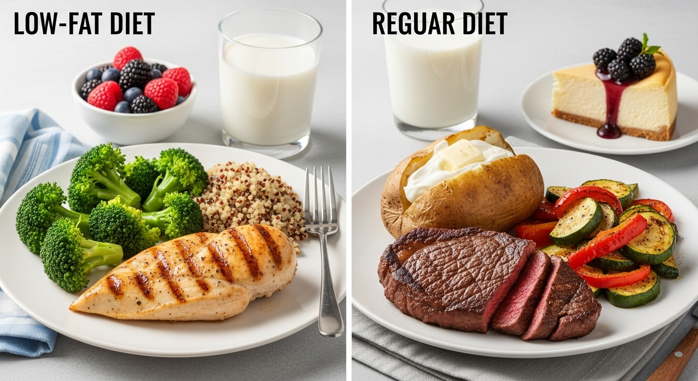 일반 식단은 보통 기름진 반찬이나 가공식품이 포함돼 있어서 칼로리는 높지만 영양소 밀도는 낮은 경우가 많아요. 반면 저지방 식단은 열량은 낮지만 식이섬유와 미네랄이 풍부해 몸에 필요한 영양을 더 잘 공급해줘요.