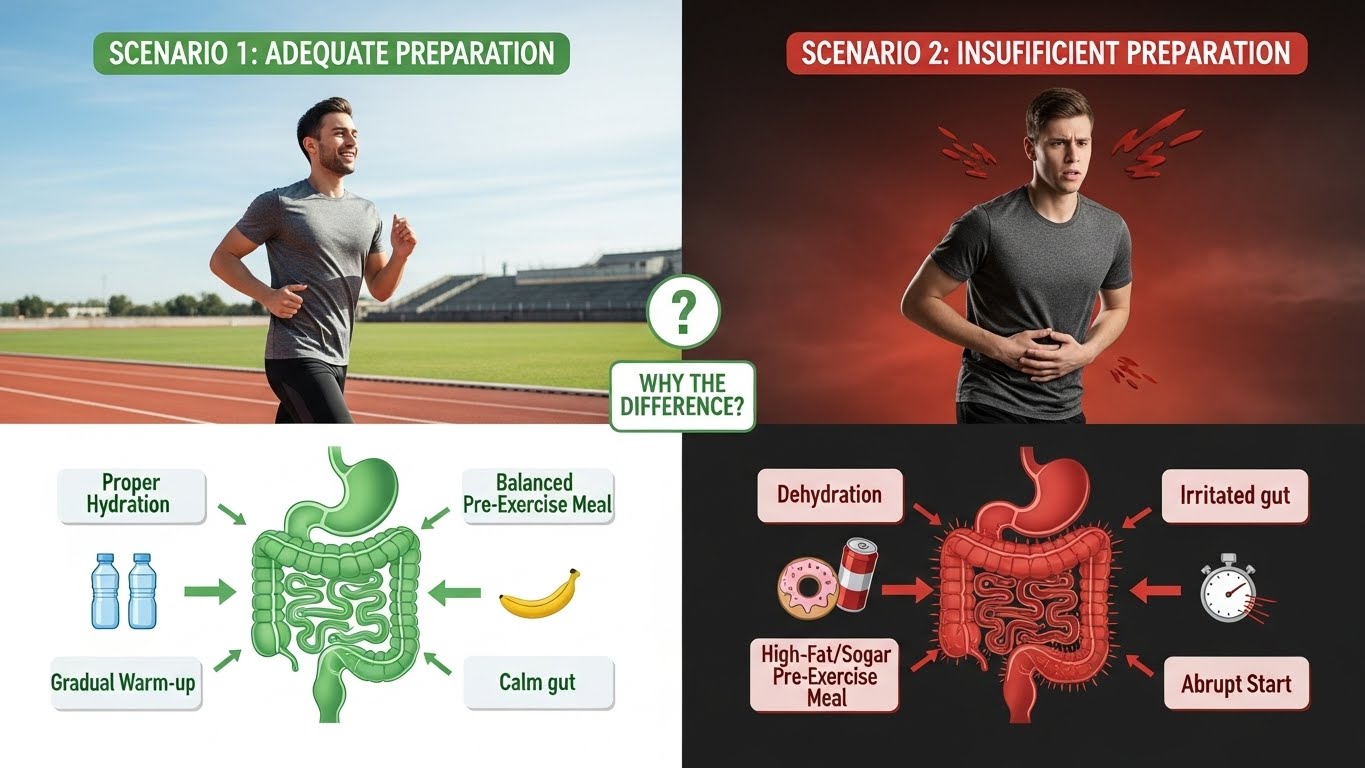 또한 과민성 장증후군(IBS) 같은 기능성 위장 장애가 있는 경우, 운동이라는 물리적 자극이 증상을 더 쉽게 촉발할 수 있습니다.